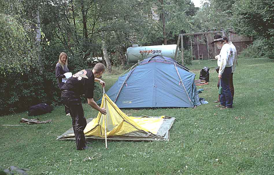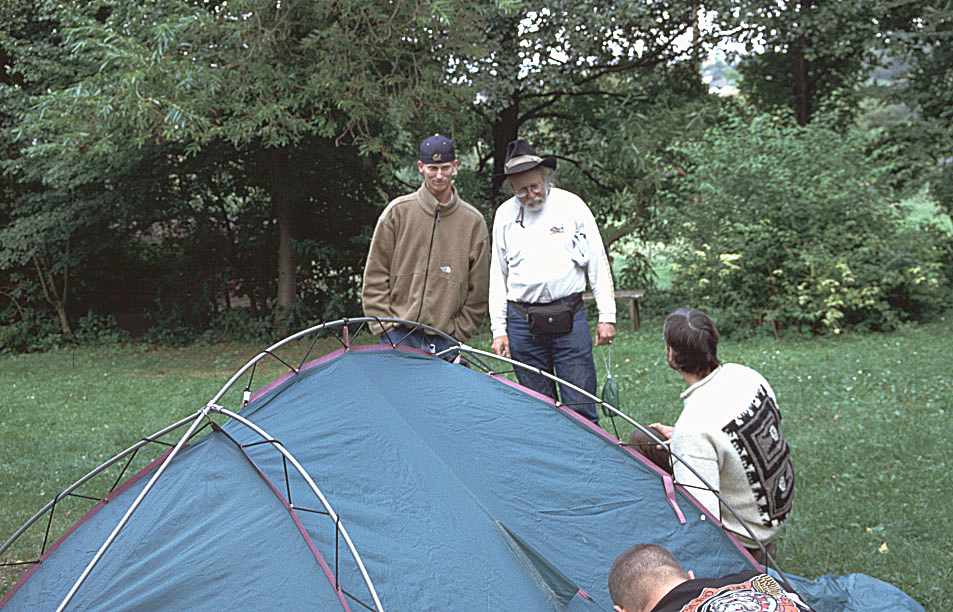Jedes Zelt eine andere Technik, aber immer wieder hilfreiche Tips von den Neugierigen