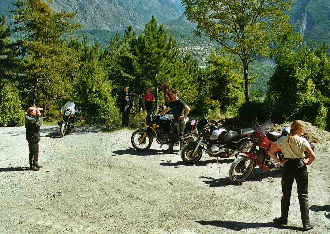 Die Straßenfahrer beim Bergwandern mit den Motorrädern. Und auch Pausen müssen sein