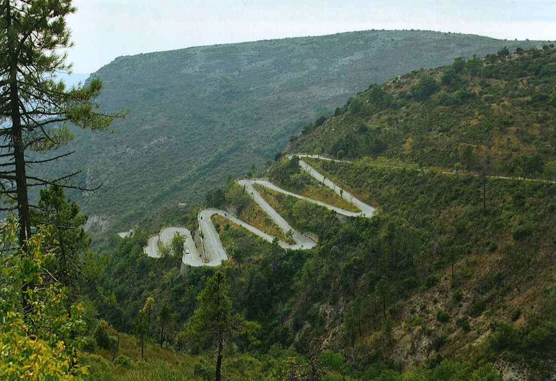 Und wieder auf normalen Straßen (D2204) nach Sospel. Die kleinen Punkte auf der Straße sind unsere Motorräder